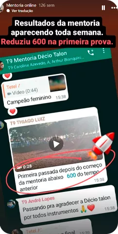 ncontros extras focados em análise de vídeo, onde você vê na prática os ajustes que geram centésimos a menos no cronômetro.